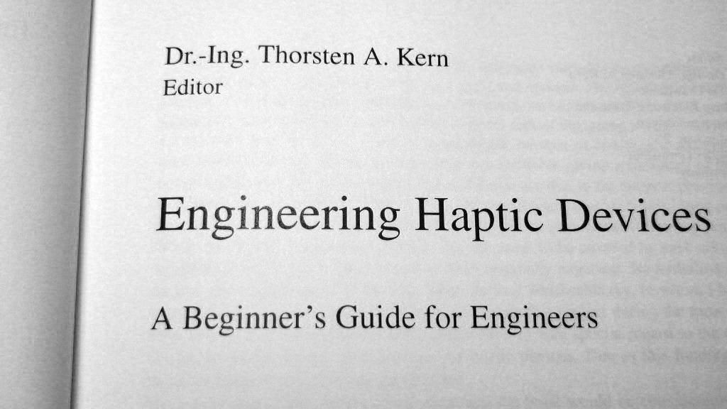 I found some quite interesting new titles this summer. 2009 seems to be a fruitful year for publications on haptics. In june I got the Human Haptic Perception, Basics and Applications volume edited by Martin Grunwald [link]. Today, I received my copy of the new book Engineering Haptic Devices edited by Thorsten A. Kern [link].